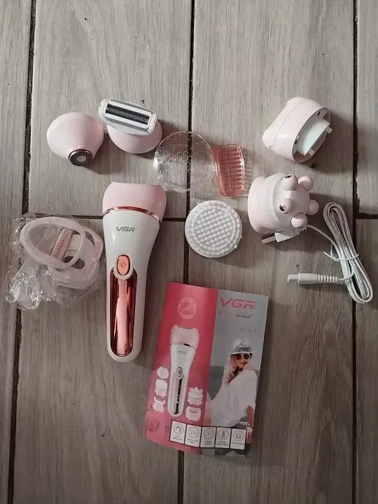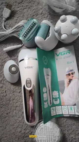 La depiladora VGR incluye una variedad de accesorios como cortadores de vello facial, cabeza de masaje, cabeza de afeitado y removedor de callos para satisfacer todas tus necesidades de cuidado.